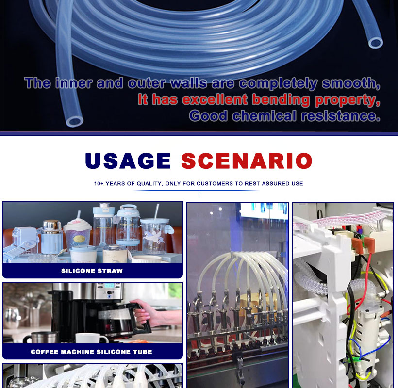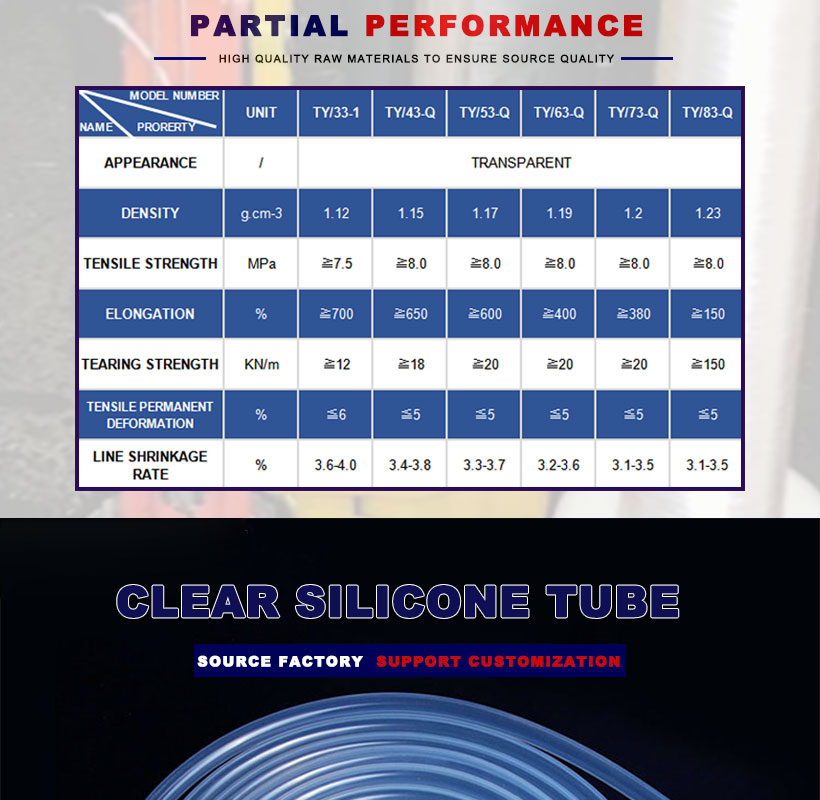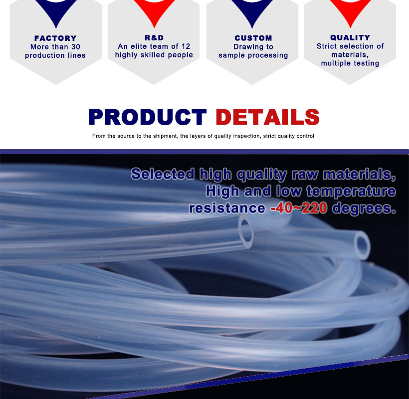 Tubo de silicona clara es una especie de especial rendimiento completo de una amplia gama de buen caucho, con excelentes propiedades de aislamiento eléctrico, resistencia al envejecimiento, estabilidad química, resistencia al tiempo anti-oxid, resistencia a la radiación, inercia fisiológica, buena permeabilidad, alta y baja resistencia a la temperatura, se puede utilizar en -55℃ ~ 220℃ durante mucho tiempo. Por lo tanto, es ampliamente utilizado en aviación, electrónica, petróleo, industria química, maquinaria, aparatos eléctricos, médicos, hornos, alimentos y otras industrias modernas, industria de defensa nacional y necesidades diarias.